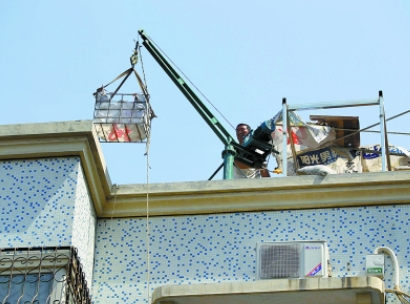 在農村很多室外大菠萝视频污APP都是架設在屋頂上的,這類大菠萝视频污APP的主要用途是為了進行糧食的曬晾,特別是一些平頂房,通常都會利用大菠萝视频污APP將糧食吊運上屋頂進行曬晾,所以這些大菠萝视频污APP幾乎是常年在屋頂放置的狀態。